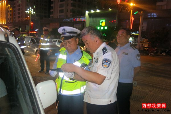 行動中,正值農(nóng)歷“七夕”,是酒駕易發(fā)高發(fā)節(jié)點(diǎn),該中隊(duì)根據(jù)轄區(qū)實(shí)際情況,堅(jiān)持“動靜結(jié)合,錯(cuò)時(shí)上崗,罰教并舉”的方針,優(yōu)化管理模式,合理安排勤務(wù),在長城路與統(tǒng)萬路十字及酒店、娛樂場所等路段采取設(shè)卡與蹲點(diǎn)相結(jié)合的方式,嚴(yán)查酒駕違法行為。期間,省總隊(duì)、市支隊(duì)及縣局黨委委員、交警大隊(duì)長王世崗等領(lǐng)導(dǎo)一行蒞臨現(xiàn)場檢查指導(dǎo)夜查酒駕統(tǒng)一行動。