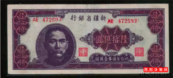 發(fā)行于1949年5月10日,由當(dāng)時中華民國國民政府的新疆省銀行發(fā)行。