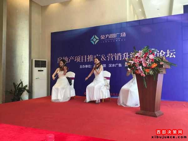 由陜西麗彩實業(yè)集團、陜西漢水廣告文化傳媒有限公司、《陜西房產(chǎn)》共同主辦的“房地產(chǎn)項目推廣與營銷升級主題論壇”,于2016年9月8日下午在咸陽金方圓廣場項目營銷中心圓滿舉辦。論壇第一輪嘉賓對話結(jié)束后,主辦單位邀請了華陰老腔藝術(shù)團成員、華陰籍姑娘屈玄登臺獻歌。(見下圖)