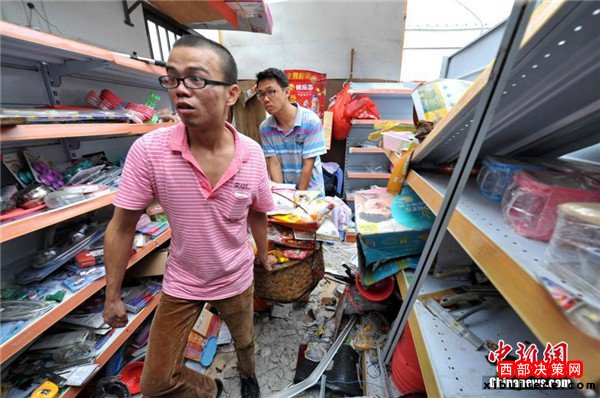 9月15日,今年第14號臺風“莫蘭蒂”于凌晨3時05分在廈門翔安區(qū)沿海登陸,登陸時中心附近最大風力15級(48米/秒,強臺風級),中心氣壓945百帕,給翔安當地帶來嚴重損失。圖為翔安一超市被摧毀。