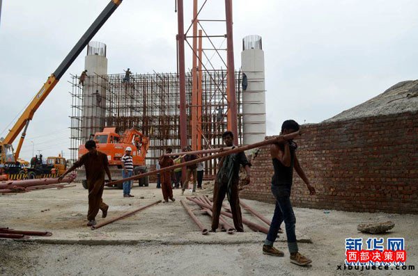 拉合爾軌道交通橙線項(xiàng)目是中巴經(jīng)濟(jì)走廊首個(gè)正式啟動(dòng)的交通基礎(chǔ)設(shè)施項(xiàng)目,也是巴基斯坦首條輕軌線路。該項(xiàng)目全長約26公里,總投資16.26億美元,由中國鐵路總公司和中國北方工業(yè)公司聯(lián)合承建,2015年4月20日簽訂總承包合同,合同工期27個(gè)月。項(xiàng)目建成后將極大地緩解擁有500多萬人口的拉合爾市的交通壓力。同時(shí),該項(xiàng)目的建設(shè)將為當(dāng)?shù)貏?chuàng)造上萬個(gè)就業(yè)機(jī)會(huì)。圖為巴基斯坦工人在拉合爾軌道交通橙線項(xiàng)目的建設(shè)工地上。
