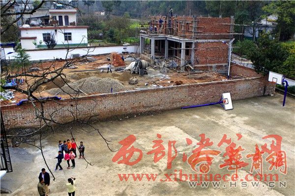 “當時選址時和教育部門溝通過,鎮(zhèn)政府領(lǐng)導(dǎo)也到現(xiàn)場看過,同意后今年7月份動工建設(shè)。”石橋村村支書程傳華說,村委會一直沒有辦公場所,之前在外邊租房,搬到學(xué)校辦公后,村民辦事不方便,群眾也沒有活動場所。他們才打算建設(shè)一棟新的辦公樓和活動廣場。