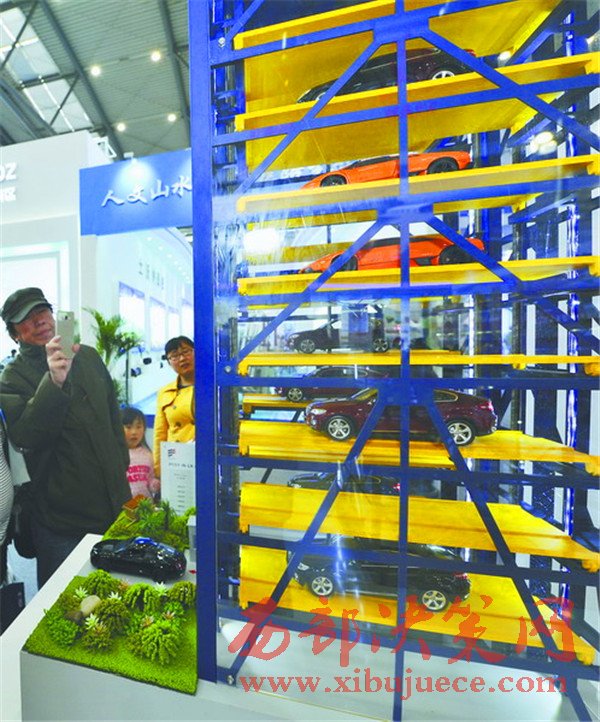 絲博會(huì)上,陜西隆翔停車(chē)設(shè)備集團(tuán)推出的APP預(yù)約立體智能停車(chē)的停車(chē)場(chǎng),吸引了大量參觀人員的駐足圍觀。