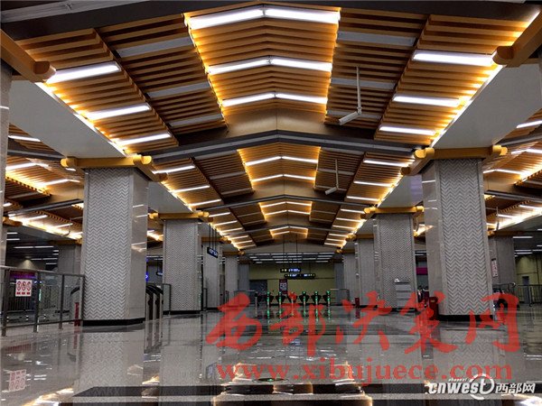 在大雁塔站,記者發(fā)現(xiàn)站廳層屋頂采用頂尖式設(shè)計,與大雁塔遙相呼應(yīng)。
