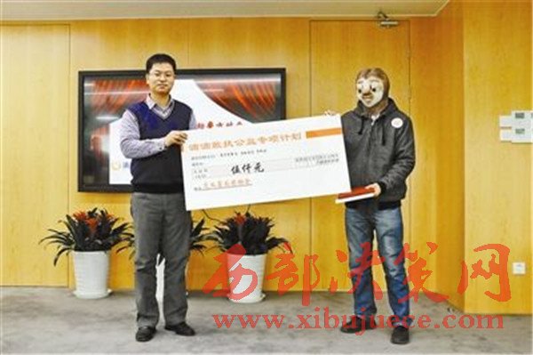 “戴”卡通面具領(lǐng)獎(jiǎng)