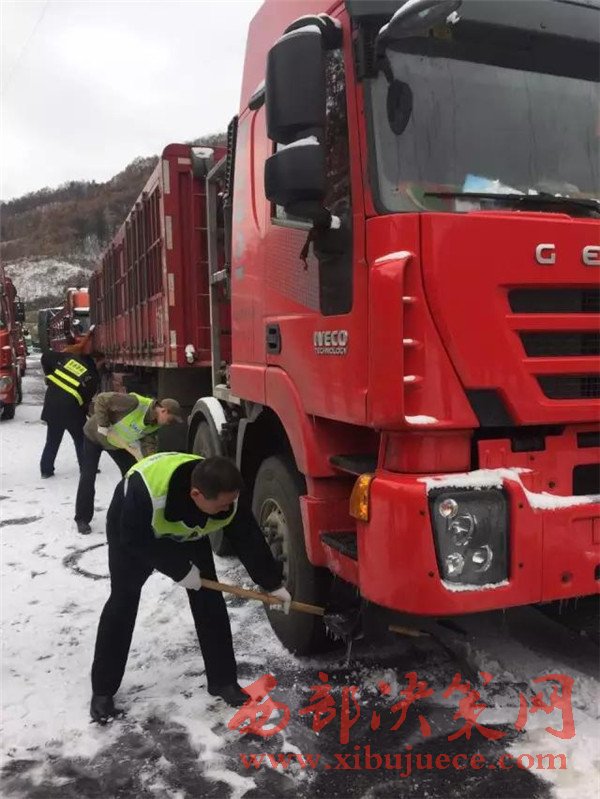 經(jīng)過一夜努力,全線目前已疏導(dǎo)爬坡困難車輛2000余輛,無安全事故發(fā)生,無人員傷亡事件,滯留司乘情緒穩(wěn)定,都在耐心等待道路疏通。西安到漢中方向高速已經(jīng)在今晨5點(diǎn)順利搶通。截止今天中午11時(shí),澇峪口管制點(diǎn)以北積壓車輛4公里,已經(jīng)開始間歇放行;寧陜服務(wù)區(qū)管制點(diǎn)以南積壓車輛5公里,選擇分流210國道的部分車輛已從寧陜收費(fèi)站駛離西漢高速。秦嶺主梁附近路段西安方向多處擁堵點(diǎn)也已基本疏通,由于積壓車輛較多,路面有結(jié)冰,車輛行駛依然比較緩慢。