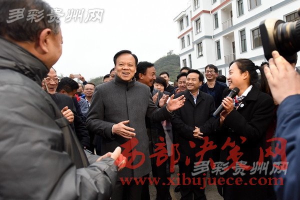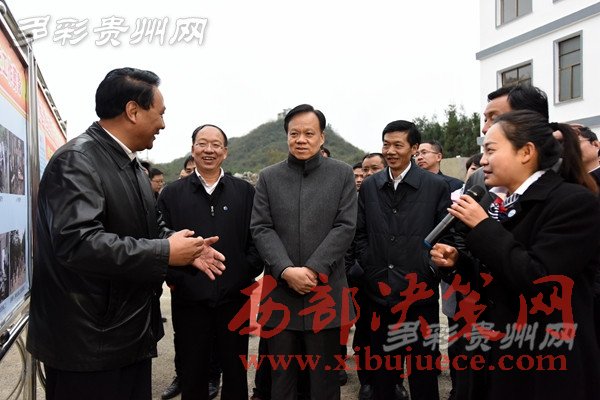 陳敏爾一行認真聽取黔西縣綠化鄉(xiāng)馬坎村安置點“兩短”“兩長”的產(chǎn)業(yè)脫貧致富路子的介紹