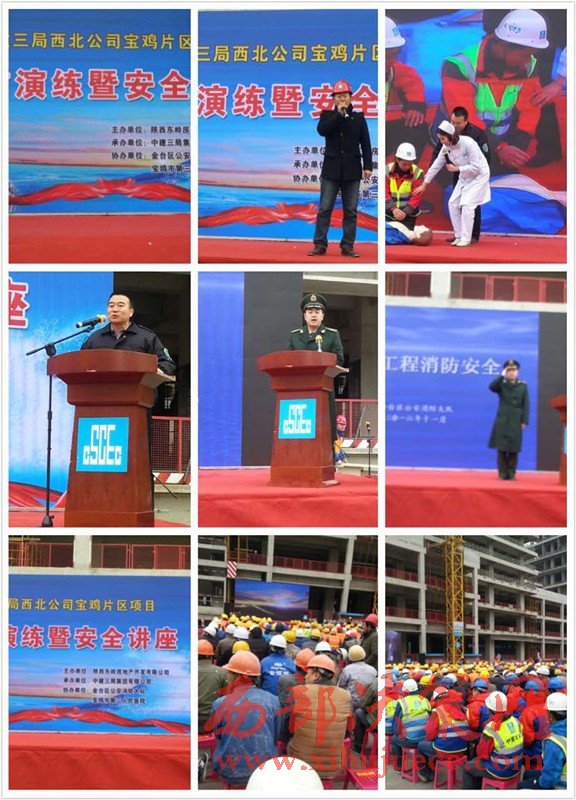 西部決策網(wǎng)訊(帥華鋒 李亮亮)11月24日下午,為促進(jìn)施工現(xiàn)場(chǎng)消防安全管理,營(yíng)造人人重視消防的良好氛圍,保障冬季施工安全,中建三局在寶雞中央金融文化商務(wù)區(qū)聯(lián)合舉行“冬季施工消防安全警鐘長(zhǎng)鳴”為主題的消防安全知識(shí)講座、模擬消防急救演練,使在場(chǎng)的建設(shè)者們真正體會(huì)到了做好冬季施工消防安全的重要性和必要性。東嶺地產(chǎn)總公司各項(xiàng)目部、金臺(tái)消防大隊(duì)、金臺(tái)區(qū)質(zhì)檢站、寶雞市第三人民醫(yī)院、全體參建單位施工人員等500余人參加了此次活動(dòng)。