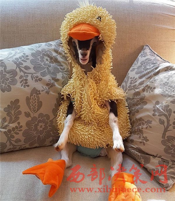 小鴨子服不僅為小羊的可愛加了分,還緩解了Polly的焦慮癥?,F在只要Polly的焦慮癥再發(fā)作,琳恩就會給它穿上小鴨子服,Polly就會馬上睡著。