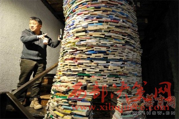 原標(biāo)題:震撼!西安陪讀媽媽用4噸教輔書壘出7.5米高"書井"