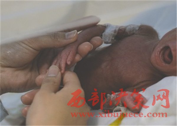 11月30日,在成都市第三人民醫(yī)院的新生兒重癥監(jiān)護室里,剛剛滿月的“007”正陷入睡夢中。“007”這個名字,是三醫(yī)院新生兒監(jiān)護室的護士們給她取的。她是一名特殊的女嬰,這個在媽媽肚子里呆了僅31周,就迫不及待來到世界上的早產(chǎn)兒,出生時,體重僅僅700克,幾乎與一瓶礦泉水的重量差不多,整個身軀只有女生的巴掌大小。