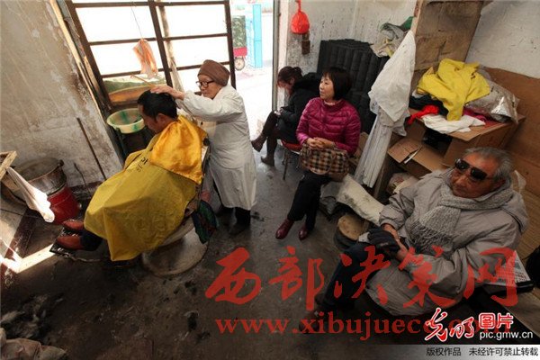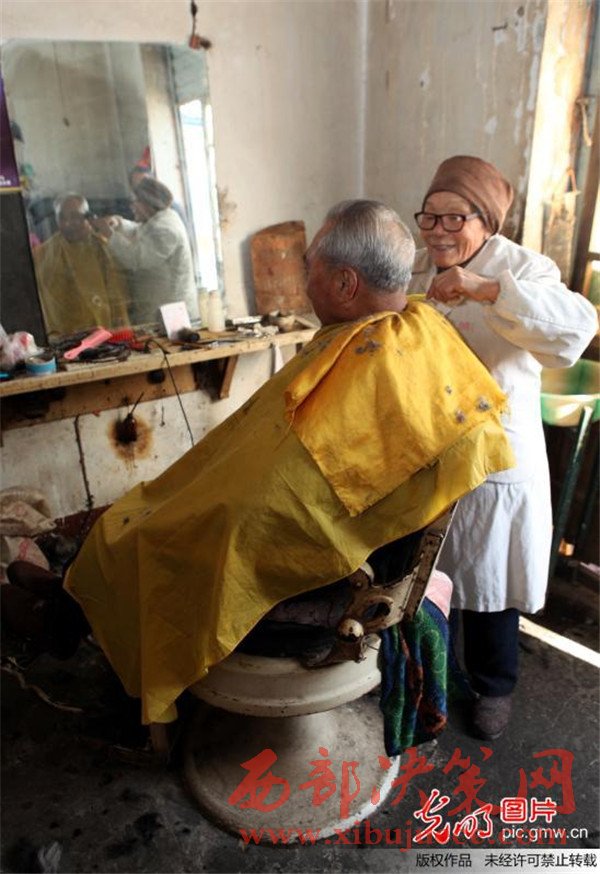 蔡瑞云幾十年來一直在河南許昌市區(qū)解放路與新興路交會(huì)處經(jīng)營(yíng)著她的"老中青理發(fā)店"。雖然店面只有10平方米,每月房租300元,但每次理發(fā)收費(fèi)卻只有2元,讓人感受到的是溫暖。