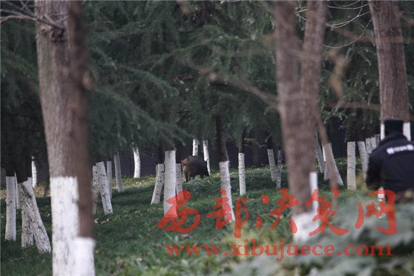 12月7日,安徽合肥,體重近200斤的成年野豬,出現(xiàn)在合肥市包河區(qū)政府大樓院內(nèi),民警兩次鳴槍,合肥市動物園工作人員吹了3針麻醉,“二師兄”愣是不倒。下午15時,包河區(qū)行政中心車來車往,前來辦事的群眾擠滿大廳,很多人并不知道,一只野豬就在附近溜達。“區(qū)政協(xié)一位女領導最先看到,上午7點多,就在國稅局后邊的綠化帶里頭。我也看到了,拿東西攆,它就往西頭跑。跟同事們說,都不相信我,講區(qū)政府怎么可能出現(xiàn)野豬。”物業(yè)師傅一臉認真,恨不得用手在空中畫出野豬的模樣,“我是農(nóng)村過來的,那就是野豬,嘴巴又尖又長的嘛。”上午等保安們反映過來,野豬已經(jīng)不知所蹤,大家便不了了之。結(jié)果下午1時許,大家伙又出現(xiàn)了。“先在綠化帶里曬太陽,被我們趕到包河區(qū)檢察院院子里,接著又跑到區(qū)政府東邊的綠化帶里。”