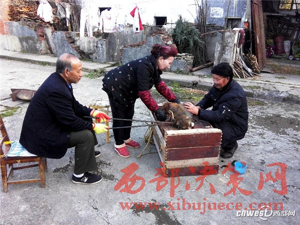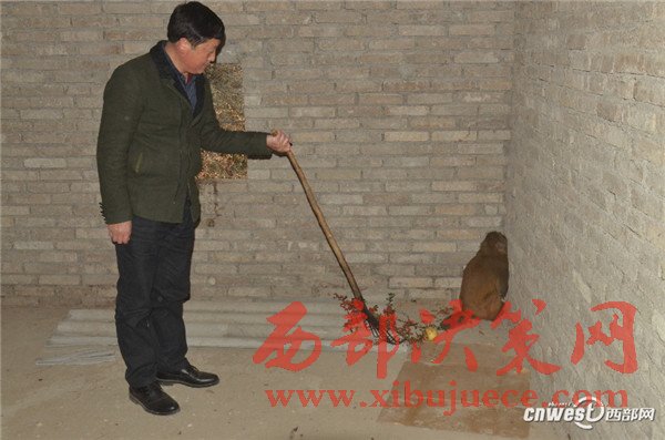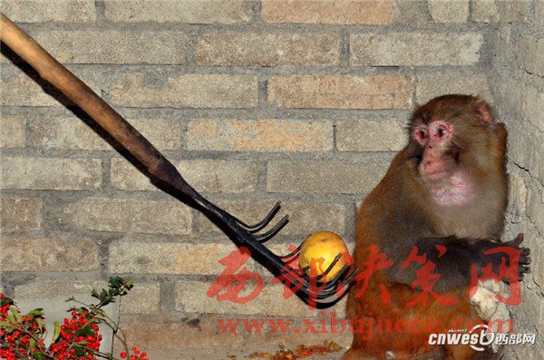 2016年12月8日,在寧強(qiáng)縣野生動(dòng)植物保護(hù)站的工作人員耐心“勸慰”下,這只獼猴終于轉(zhuǎn)過(guò)頭來(lái)看著鐵叉上的蘋果。