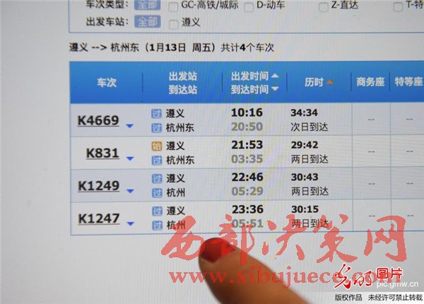 2016年12月15日,一名貴州省余慶縣市民通過手機(jī)客戶端購(gòu)買春運(yùn)首日的車票。