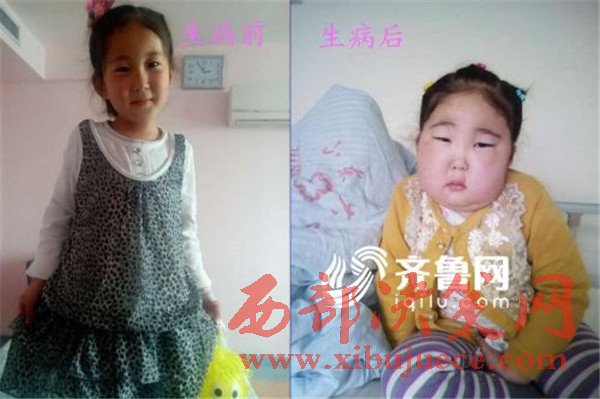 近3個月因服用激素類藥物,小海青被“催熟了”,體重增加了12斤,曾經(jīng)精靈可愛的女孩變成了“胖女孩”。