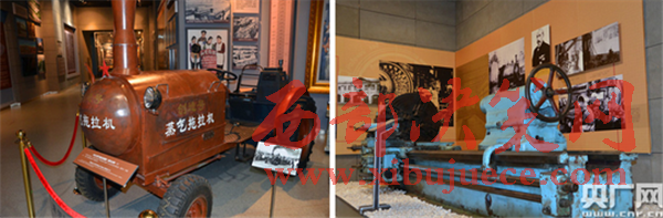 圖(左)1958年,沈陽農(nóng)業(yè)機(jī)械廠制造的新中國第一臺18馬力蒸汽拖拉機(jī)。圖(右)1959年,沈陽第一機(jī)床廠生產(chǎn)的C650型車床。