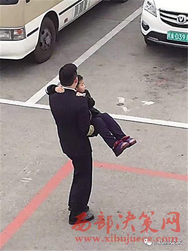 機(jī)長(zhǎng)抱小男孩下飛機(jī)圖片刷爆朋友圈
