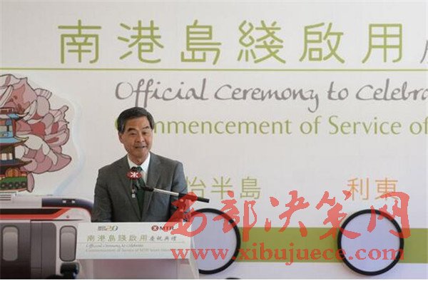 梁振英在致辭時表示,他一直是香港鐵路服務(wù)的“粉絲”,十分樂于見證新的鐵路交通線的啟用。此前開通的觀塘線沿線以及此次南港島線東段的啟用,都將令香港的鐵路網(wǎng)絡(luò)更加四通八達(dá)。