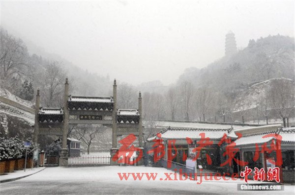 延安喜迎降雪 光禿禿的樹枝綴滿了潔白的"梨花"