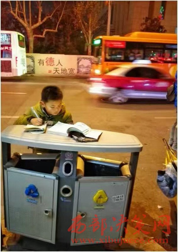 攤位旁,張女士的兒子正趴在垃圾桶上認真地寫作業(yè)。這一幕,經(jīng)常會發(fā)生在青島臺東大酒店附近。附近許多商販都知道“路邊賣烤地瓜那家”的兒子學(xué)習(xí)很用功,也特別懂事,經(jīng)常幫母親收拾貨物,照看攤位。