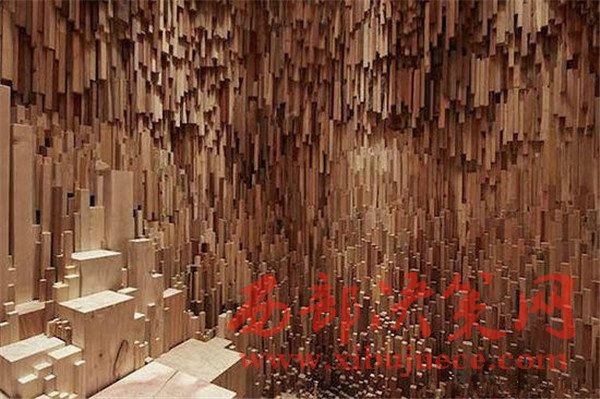 空心這個(gè)交互式裝置是藝術(shù)家Katie Paterson和建筑家Zeller & Moye的作品。該作品由10000多塊跨越百萬年的木材制成。它們被切成木板,之后雕成鐘乳石的形狀,掛在天花板上,為參觀者聽過獨(dú)特的,步行參觀體驗(yàn)。