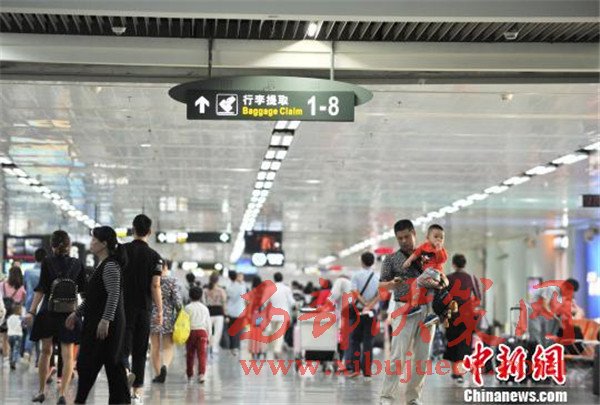 資料圖。圖為??诿捞m機(jī)場到達(dá)大廳迎來大量進(jìn)港旅客。