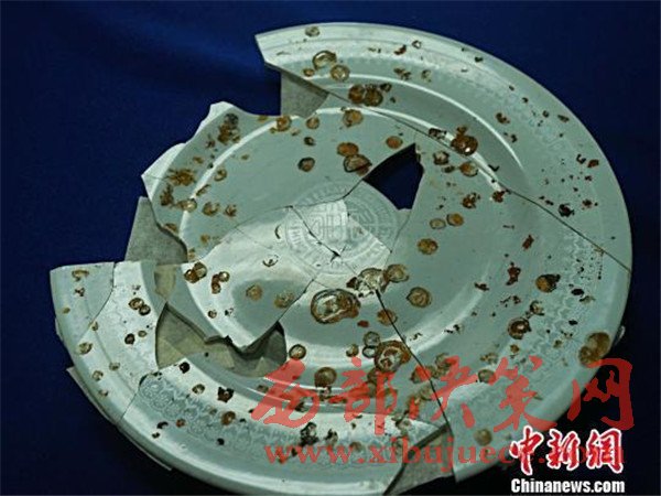 剛出水的“致遠(yuǎn)”餐盤,型制為寬平沿,淺弧腹、盤心平、圈足。盤心有篆書“致遠(yuǎn)”二字,外圈為字母,上半圈為“CHIH YüAN”(致遠(yuǎn)威妥瑪拼音),下半圈為英文“THE IMPERIAL CHINESE NAVY”,組合成一個(gè)圓形徽標(biāo)。