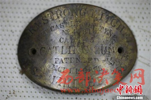 加特林機(jī)關(guān)槍的銘牌尚存。“丹東一號(hào)”水下考古隊(duì)供圖