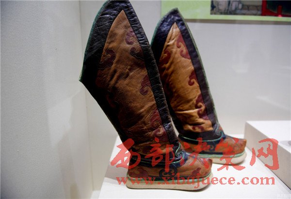 首次展出的“清明黃江綢繡金龍出鋒夾朝袍”為清帝冬季朝袍,袍身繡刺云龍、十二章紋,袍襟綴鎏金圓銅扣五枚、披肩綴鎏金圓銅扣一枚。由于朝袍沒有口袋,因此清帝腰帶常掛荷包、香囊、扇袋等實用裝飾物件。清黃皮釘云頭尖底靴。