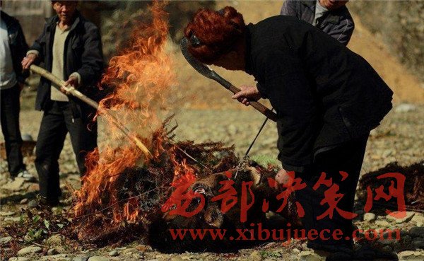 村里人用火把牛燒死,現(xiàn)場又將牛骨擺成一排,這是要做什么?