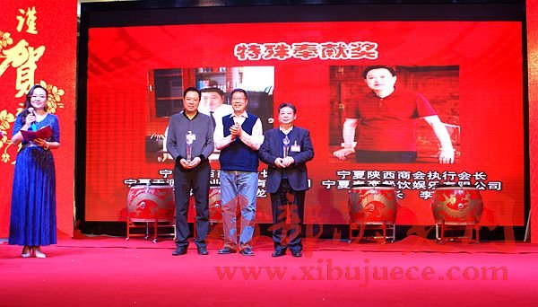 年會上,張海龍會長、李明義執(zhí)行會長一起向2016年新增常務(wù)副會長、副會長、理事授牌;商會黨支部書記、秘書長王惠選宣讀了寧夏陜西商會關(guān)于表彰獎勵2016年度特殊奉獻獎、誠信企業(yè)獎、創(chuàng)新企業(yè)獎、愛會敬業(yè)獎企業(yè)單位的決定。自治區(qū)人民檢察院原檢察長師夢雄向榮獲商會特別奉獻獎的張海龍會長、李明義執(zhí)行會長頒獎;張海龍會長、李明義執(zhí)行會長、黨支部書記、秘書長王惠選分別向11個榮獲誠信企業(yè)、11個榮獲創(chuàng)新企業(yè)、11個榮獲愛會敬業(yè)企業(yè)單位頒獎。