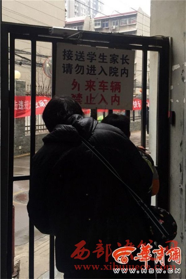 2月7日上午10時許,西安市友誼西路自在廣場小區(qū)內(nèi),一位送孩子上補習班的家長被擋在門外。小區(qū)門衛(wèi)要求讓補習班老師親自下樓來接。