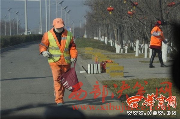 從十字路口向南約450米長的東側(cè)道路都屬于潘雙成的保潔區(qū),自從西安開展環(huán)境大整治治理以來,“綠化帶里的垃圾都撿干凈了,現(xiàn)在就是巡查著看看隨意丟棄的垃圾。”潘雙成說,環(huán)境大整治不但要求保潔員的工作更加細致,也要求沿街商戶注意保持門前區(qū)域干凈衛(wèi)生,“垃圾清掃車也加大清掃頻次,除了路面上比較明顯的垃圾以外,灑水車和清掃車也會把一些小垃圾集中到路邊來,我們清掃起來也比較方便。”潘雙成說,路面沒有煙頭、果皮紙屑是清掃的基本要求,“就像這條道路,偶爾有貨車拋撒的垃圾就比較費勁,但是從車內(nèi)隨意向外丟棄垃圾的現(xiàn)象明顯減少了,只有在十字路口,一些等待紅燈的車里會隨便丟下煙頭,這時候也注意不到,等到車開走了才能看到,所以我經(jīng)常在十字路口多等上一段時間,看見煙頭就掃干凈。”