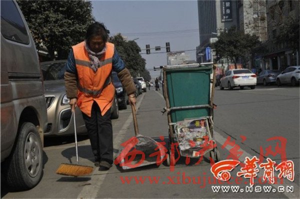 余師傅是周至縣一名保潔員,59歲的他去年12月6日正式上崗,主要負責(zé)周至縣溫泉路一段保潔區(qū)。