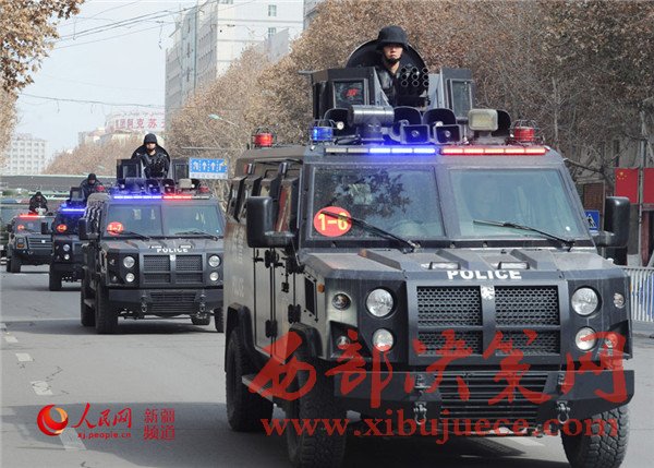 隨著一聲令下,戰(zhàn)士們登上戰(zhàn)車,警燈閃爍,警笛齊鳴,氣勢磅礴。一支威武之師、鋼鐵之師、正義之師吹響沖鋒號,在烏魯木齊市主要街道和重點部位進(jìn)行武裝巡邏。