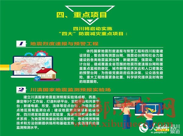 其中,已啟動實(shí)施的“地震烈度速報(bào)與預(yù)警工程”,由國家項(xiàng)目和地方項(xiàng)目構(gòu)成,國家項(xiàng)目在川投資1.5億元左右。該項(xiàng)目將完善全省地震監(jiān)測臺網(wǎng),建成覆蓋全省的地震烈度速報(bào)臺網(wǎng)和覆蓋重點(diǎn)監(jiān)視防御區(qū)、城市群等經(jīng)濟(jì)發(fā)達(dá)和人口密集區(qū)的預(yù)警臺網(wǎng),提供分鐘級的地震烈度、地震速報(bào)和秒級地震預(yù)警信息服務(wù),為地震科學(xué)和預(yù)測預(yù)報(bào)研究提供豐富的基礎(chǔ)觀測數(shù)據(jù)。