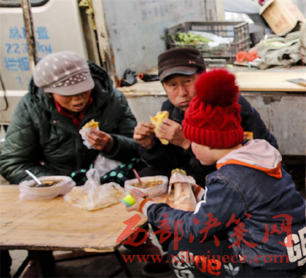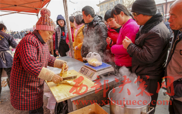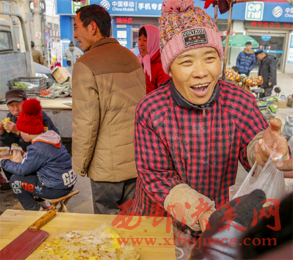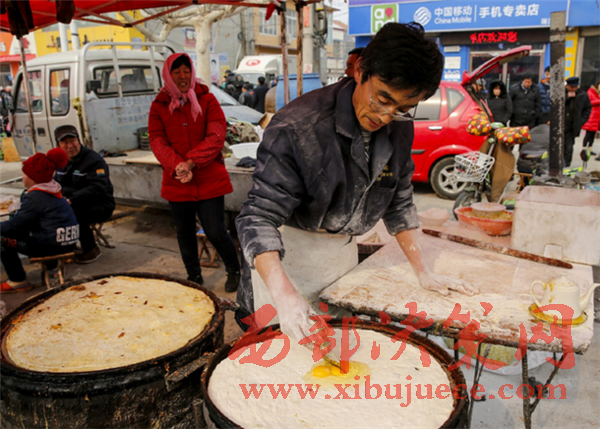 趕集餓了的鄉(xiāng)親們要一碗豆腐腦,二斤大餅,一家三口吃個(gè)飽飽的。