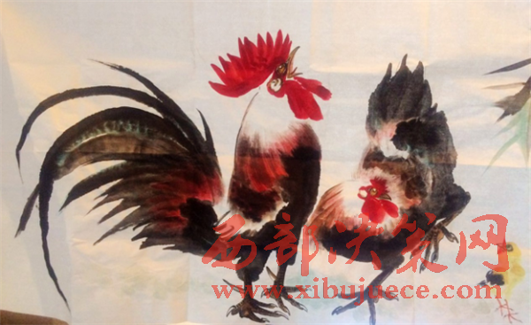 我畫的公雞被公雞鹐了:畫雞已經(jīng)成了他每天的必修課,2004年12月的一天,他下班回家吃過晚飯,到后院抱了一只公雞到屋里準(zhǔn)備觀察做畫,他把公雞放在地上,由于新環(huán)境公雞的頭上下左右窺視看看四周。突然,公雞先是跳到了床上,然后從床上跳到箱子上,從箱子上飛向掛在墻上以前畫的雄雞,鹐了畫上雄雞的脖子。它把我畫的公雞誤當(dāng)成同類了,它向同類發(fā)起了攻擊,卻沒有發(fā)現(xiàn)那是我畫的畫。看來(lái)我畫的雞同類已經(jīng)無(wú)法分辨出來(lái)了,我要發(fā)誓必須努力的繼續(xù)畫下去。他非常激動(dòng)的介紹到。