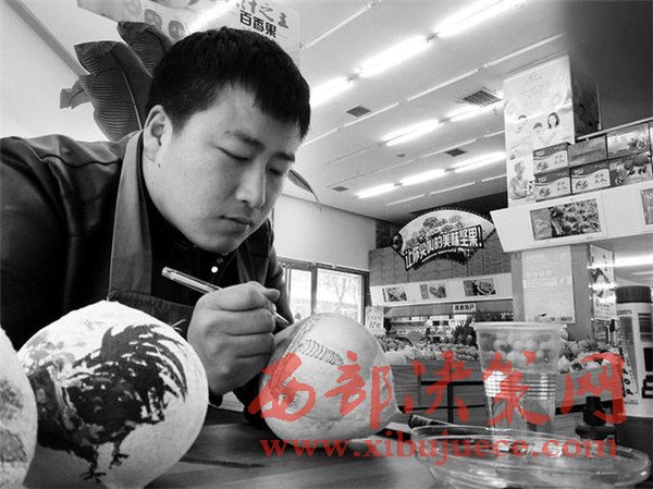 銀慧君算是找到了“用武之地”。他學的是國畫,賣的是水果,如何把興趣和工作結合起來,他想了一個辦法:在賣的椰子殼上作畫。