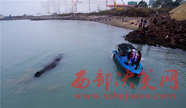 3月14日,救助誤入廣東大亞灣海域抹香鯨的行動(dòng)繼續(xù)。據(jù)廣東省惠州市海洋與漁業(yè)局通報(bào),13日晚抹香鯨游入惠州港油庫(kù)碼頭附近海域,專家根據(jù)現(xiàn)場(chǎng)情況反饋:鯨魚身體狀況不佳。14日下午,抹香鯨呼吸次數(shù)減少,游動(dòng)速度減慢甚至停滯不前,情況不容樂(lè)觀。隨著潮水退去,可以判定鯨魚已經(jīng)擱淺。