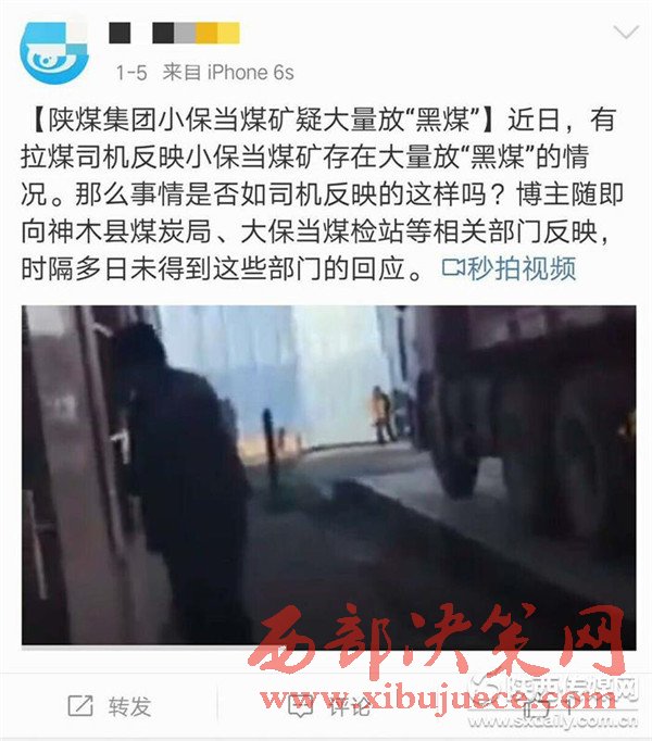 發(fā)稿前,記者又在網(wǎng)上獲悉,1月5日就有網(wǎng)民向神木縣煤炭局和大保當煤管站反映過小保當煤礦銷售黑煤的現(xiàn)象,該網(wǎng)民稱此事時隔多日未得到相關部門的回應。