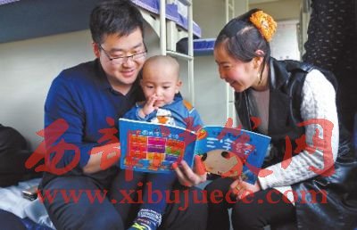 3月25日17時(shí)13分,在“民族團(tuán)結(jié)一家親號”列車上,茹則妮薩·斯拉吉艾合麥提(右)的兒子在本次列車上認(rèn)識了新朋友,并獲得了小禮物《三字經(jīng)》。