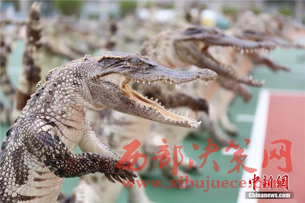 其中鱷魚標本32件為站姿,45件為爬行姿態(tài),最大的標本長度近2米。
