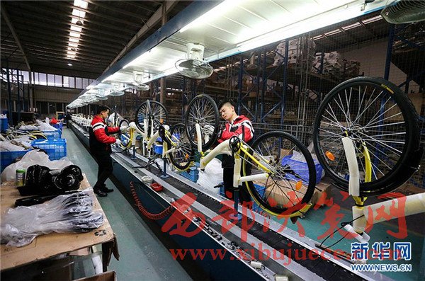 4月10日,在天津市武清區(qū)南蔡村鎮(zhèn)一家自行車生產(chǎn)企業(yè),工人在包裝共享單車車架。該企業(yè)日均下線共享單車約1500輛,目前正擴(kuò)充生產(chǎn)線,開足馬力生產(chǎn)共享單車。隨著共享單車走紅大江南北,國內(nèi)傳統(tǒng)自行車制造業(yè)迎來新的機(jī)遇。共享單車投放量的快速增加,給自行車行業(yè)注入一針強(qiáng)心劑,多地自行車企業(yè)著手調(diào)整思路、升級產(chǎn)能,為下一步發(fā)展做準(zhǔn)備。