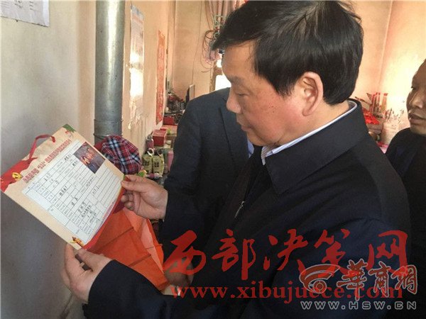 婁勤儉接著問他,家里的開銷主要在什么地方。得知是供孩子上學(xué)和給剛?cè)ナ?0多天的老母親治病后,又問:“有困難知道不知道找誰?”葉偉鋒說:“找干部”。婁勤儉進(jìn)一步追問:“你家的幫扶干部是誰?常來嗎?你能不能叫上名字?”葉偉鋒有些不好意思地說:“我只能記住姓啥。”他想了想找到貼在墻上的一張紙,是“永壽縣干部‘532’精準(zhǔn)幫扶萬戶脫貧工作明白卡”,上面記錄著幫扶干部龐阿萌的電話。