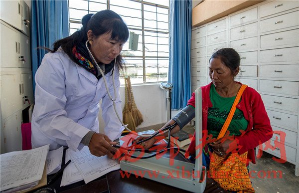 這是云南省德宏傣族景頗族自治州隴川縣隴把鎮(zhèn)龍安村的一名景頗族村民(右)在村衛(wèi)生室里看病(1月19日攝)。