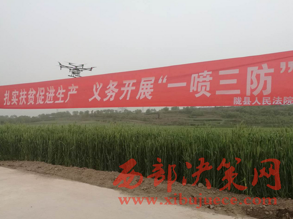普樂塬村是隴縣法院幫扶的貧困村,針對(duì)村內(nèi)青壯年大多外出打工,勞動(dòng)力不足的情況,為確保小麥高產(chǎn),減輕村民負(fù)擔(dān),同時(shí)引導(dǎo)大家關(guān)注科技種田,轉(zhuǎn)變思維方式,經(jīng)法院駐村第一書記路云多方聯(lián)系,隴縣法院花費(fèi)3萬(wàn)元,租用無(wú)人機(jī)免費(fèi)為普樂塬村噴灑農(nóng)藥。預(yù)計(jì)用2天時(shí)間為全村2000畝小麥進(jìn)行防蟲霉菌預(yù)防,同時(shí)也邀請(qǐng)縣農(nóng)機(jī)推廣中心對(duì)藥品質(zhì)量進(jìn)行全程監(jiān)督。