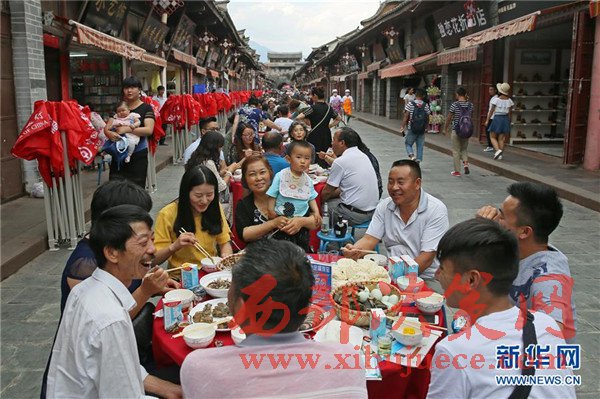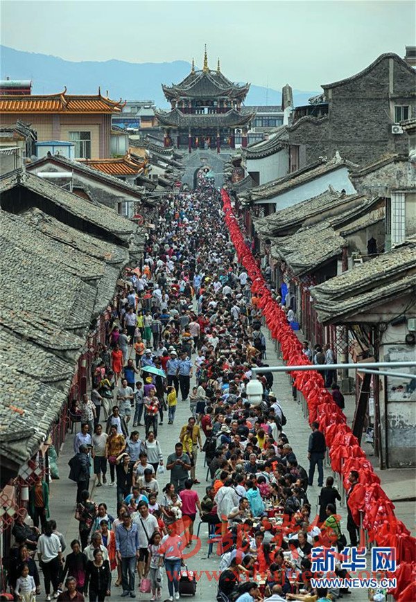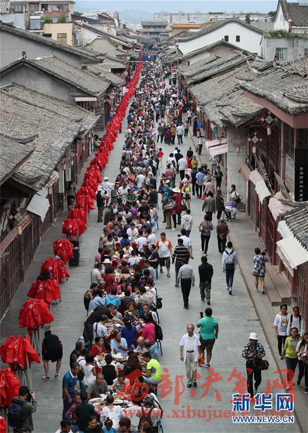 當日是端午節(jié),四川省涼山彝族自治州會理縣會理古城舉行“萬人藥根宴”,約1.5萬人共同在古城內1500張桌上就餐。