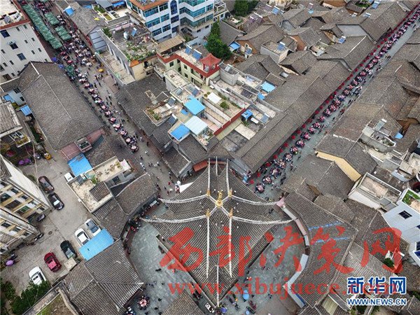 這是5月30日在會理古城航拍的“萬人藥根宴”。